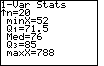 3. Press , , and 1:1-Var Stats. The view screen should have '1-Var